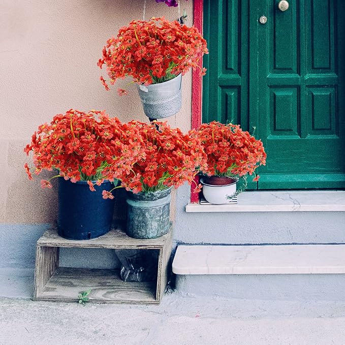 - No Fade: The flowers are fade-resistant, ensuring that their colors remain vibrant even after long-term exposure to sunlight. They are perfect for outdoor use and will add a touch of color to your garden or porch.