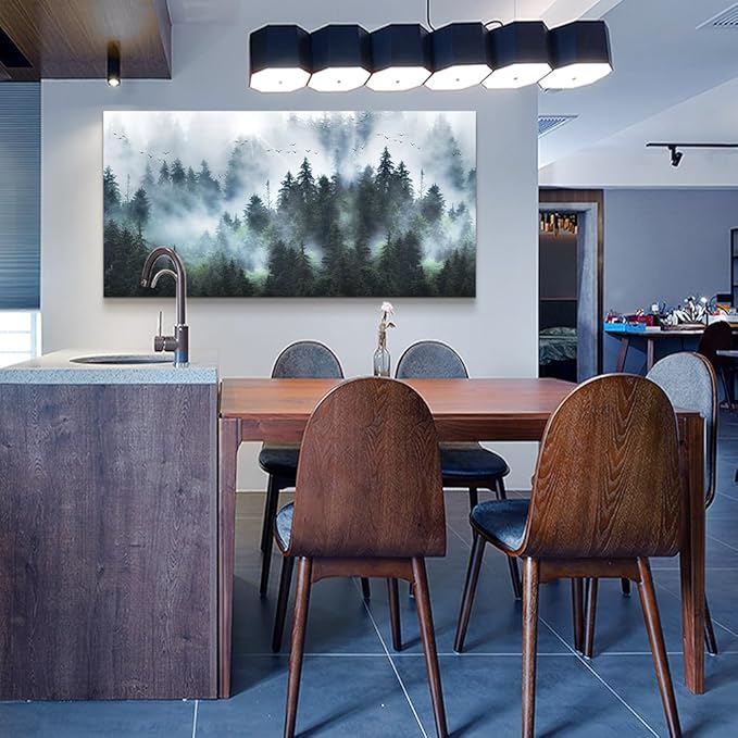 Wapluam Large Canvas Wall Art For Living Room Wall Decor For Office Bedroom Wall Decoration Foggy Forest Landscape Wall Pictures Framed Canvas Prints Artwork Modern Wall Painting Home Decor 30"X60"