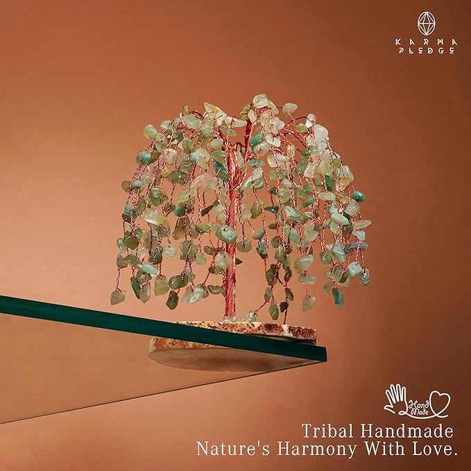 - These handcrafted trees are often made by arranging various crystal stones on wire branches, which are then attached to a sturdy agate slice base. The branches are twisted and shaped to mimic the appearance of a tree, often with leaves or blossoms represented by small crystals. Sizes vary between 5.5" to 6.5" inches and include 300 crystal beads. Handmade in India, all these crystals are naturally created, resulting in slight variations in size, color, texture, and more