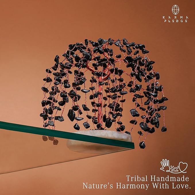 - These handcrafted trees are often made by arranging various crystal stones on wire branches, which are then attached to a sturdy agate slice base. The branches are twisted and shaped to mimic the appearance of a tree, often with leaves or blossoms represented by small crystals. Sizes vary between 5.5" to 6.5" inches and include 300 crystal beads. Handmade in India, all these crystals are naturally created, resulting in slight variations in size, color, texture, and more