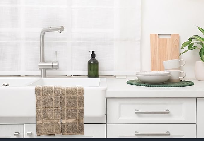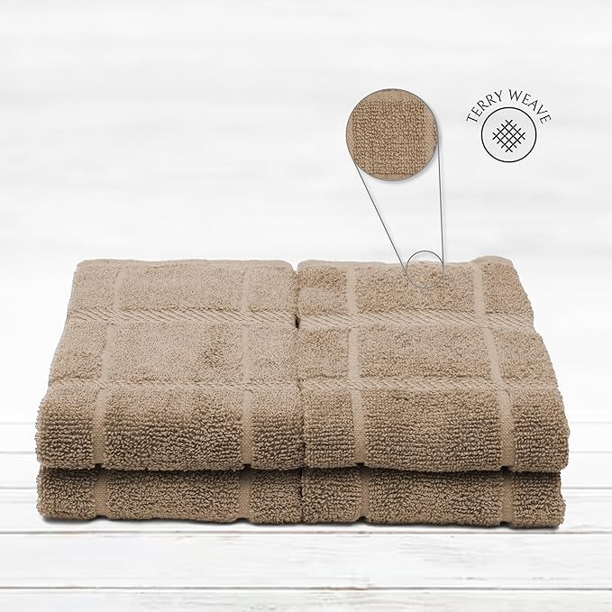 100% Cotton Terry Dish Towels, 4 Pack Plain, 16 x26 Inches, Super Soft and Absorbent Kitchen Towels, Perfect for Kitchen Cleaning and Dish Washing | Tan