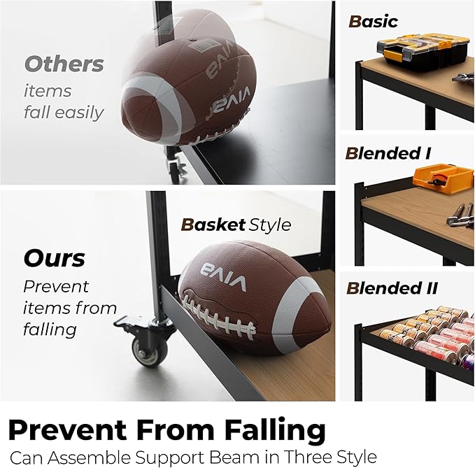 - Useful Configurability : It can be changed into a total of four options depending on the storage style. especially, unlike other shelves, our basket-style design ensures your items stay safely in place, preventing spills and falls. It will be the best option for you who want a wheel shelf.