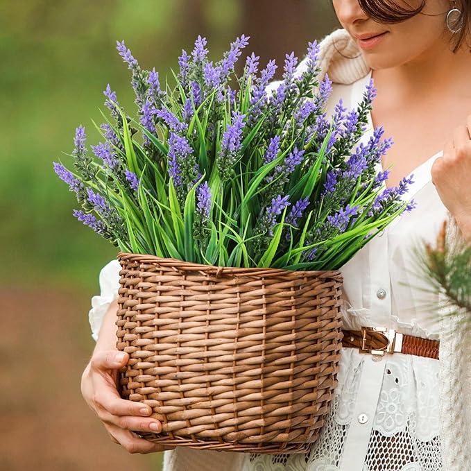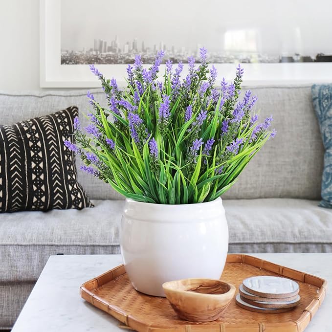 N&T NIETING 6 Bundles Artificial Plants Outdoor, Fake Monkey Grass with Flowers, UV Resistant Fake Plants for Garden Window Office Patio Hanging Planter Pathway Front Porch Home(Purple)