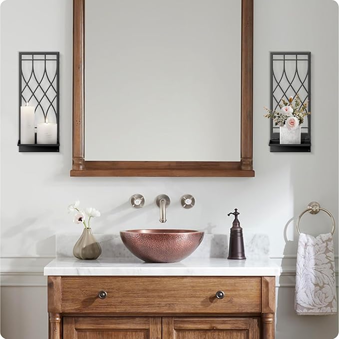 - Unique Decor: Open your artistic talents to match multiple rustic ornaments with these candle holders. with candles, jars, vases, small plants, or other decorative pieces standing on the sconces, they would be unique farmhouse wall decors for your home.