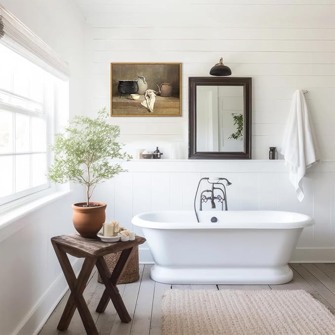 - 【Premium Materials】 Immerse yourself in the superior craftsmanship of this high-quality canvas wall art prints. Printed on premium canvas and using the finest fade-resistant ink with a waterproof film on it to ensure the colors stay vibrant and lasting. And each vintage bathroom pictures is stretched tightly over a wooden frame, ensuring the canvas is stretched and does not buckle. We insist on using the best materials and workmanship to ensure its durability.