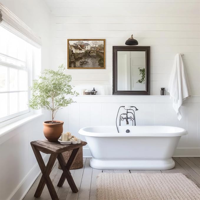 - 【Framed Wall Art Canvas Prints】This antique country landscape painting will bring a soothing effect to any room of your home with its calming colors. This country oil painting is perfect for farmhouse style spaces, with a bold elegance that makes it an iconic centerpiece for you. The framed vintage landscape wall art decor is ideal for farmhouse decoration, this artwork adds a rustic touch to your bathroom, bedroom, and living room, creating a serene and cozy atmosphere.