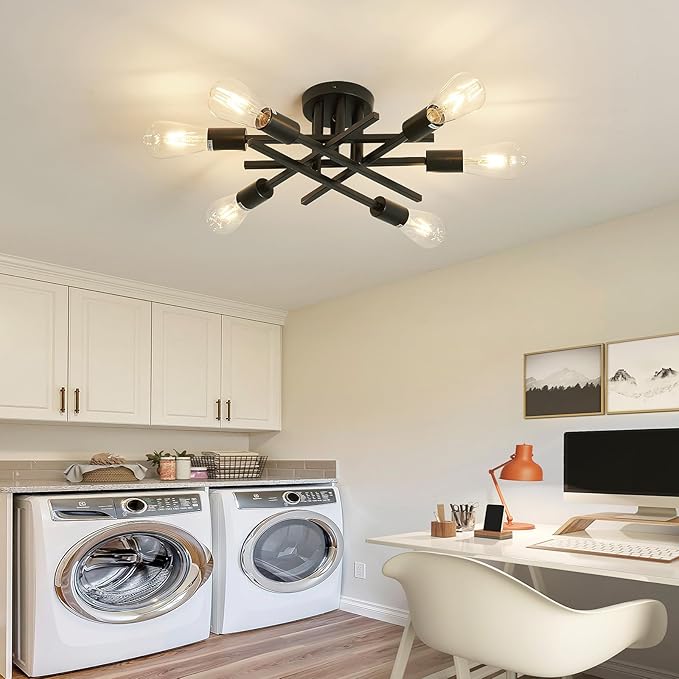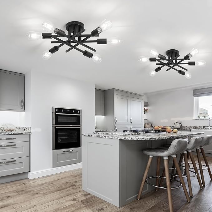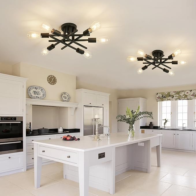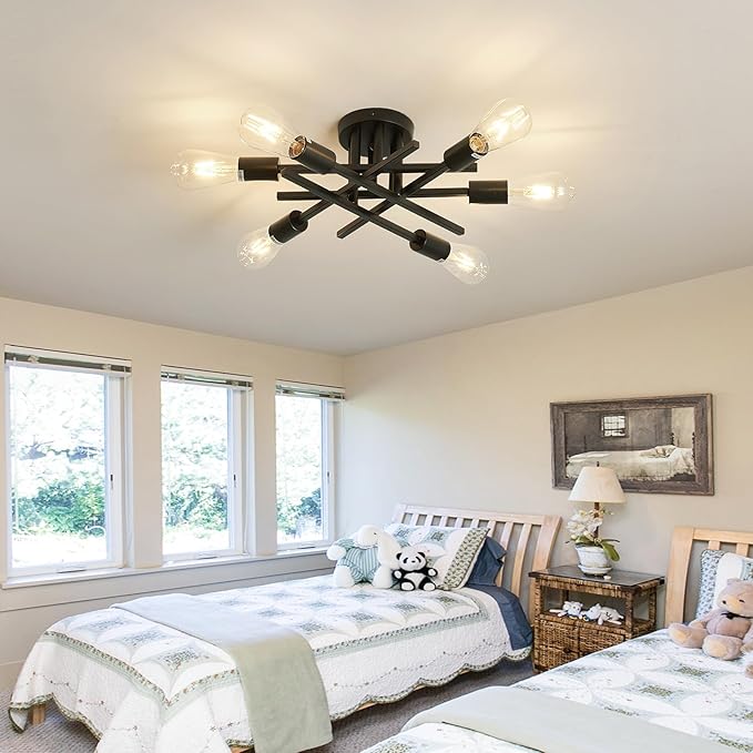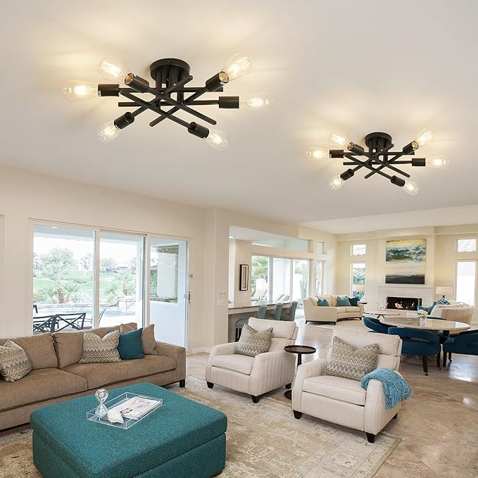 ASGYISA 6-Lights Semi Flush Mount Ceiling Light Fixture 2-Pack Black Vintage Matte Sputnik Chandelier Ceiling Lamp for Farmhouse Dining Room Living Room Bedroom Kitchen Entryway