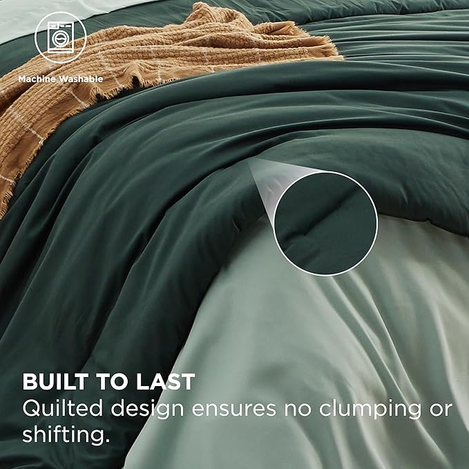 Bedsure King Size Comforter Set - 7 Pieces Forest Green King Bedding Set for All Seasons, Boho Contrasting Design Bed in a Bag with Comforter, Sheets, Pillowcases & Shams