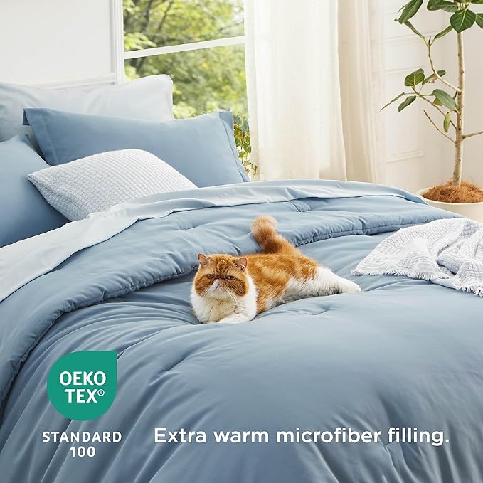Bedsure Grayish Blue California King Comforter Set - Cal King Bed Set 7 Pieces, Cali King Bedding Set with Comforter, Sheets, Pillowcases & Shams