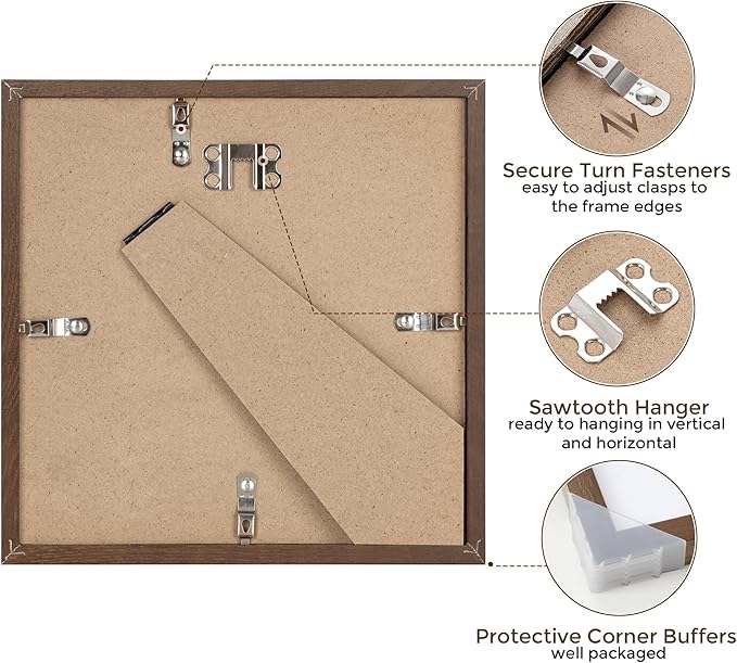 - WELL PACKAGED - Each 8"x8" square frame is shrink-wrapped and secured with corner protectors, all of our 8 x 8 wood frames are packaged in custom-made corrugated boxes so your frames arrive in pristine condition.