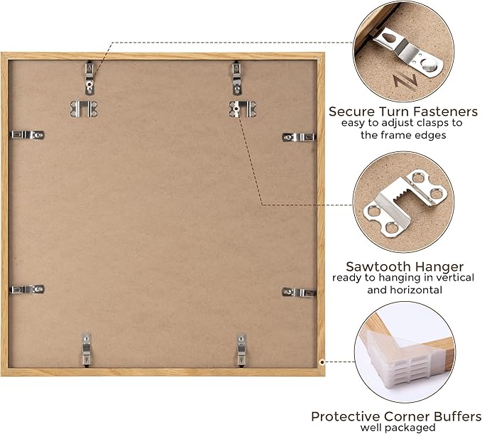 - WELL PACKAGED - Each 16"x16" square frame is shrink-wrapped and secured with corner protectors, all of our 16 x 16 wood frames are packaged in custom-made corrugated boxes so your frames arrive in pristine condition.