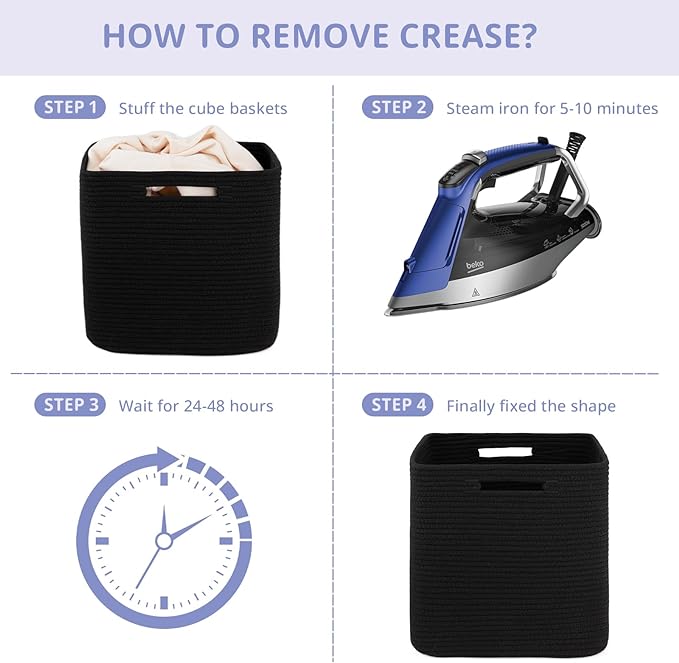 - Multi-Purpose Storage Organizer Bins: The cube storage bins can be easily hidden in closets, cabinets, side tables, cabinets, shelves, etc, without occupying any gaps. You can also use the organization basket as a nursery child room toy box, closet storage bins, towel baskets, book storage bins, magazine organizer cube, clothes basket, and many other purposes