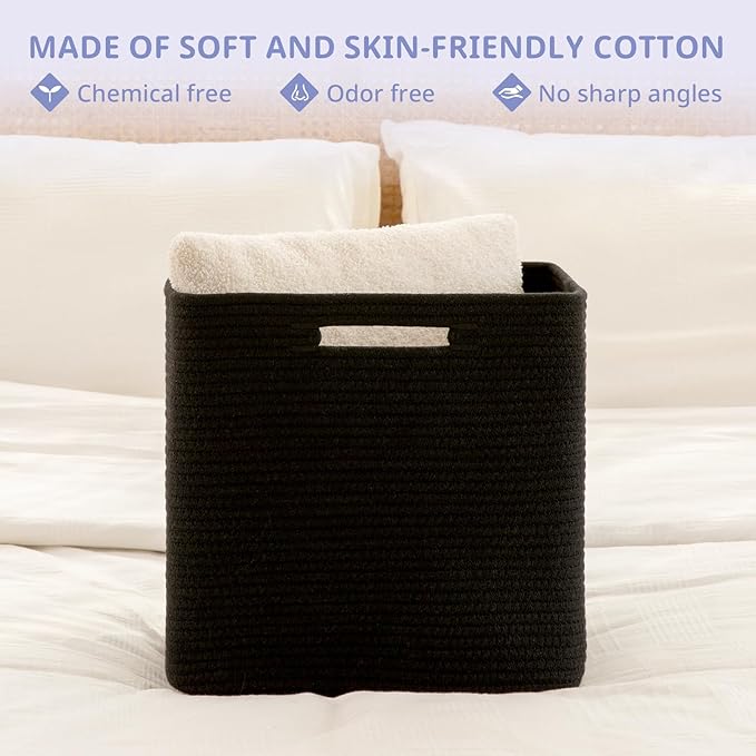 - 100% Cotton Rope Woven Storage Bins:OIAHOMY soft woven storage cubes are made of high-quality natural cotton, chemical free and safe for kids and pets. It will not scratch your furniture and floor, firm and easy to carry
