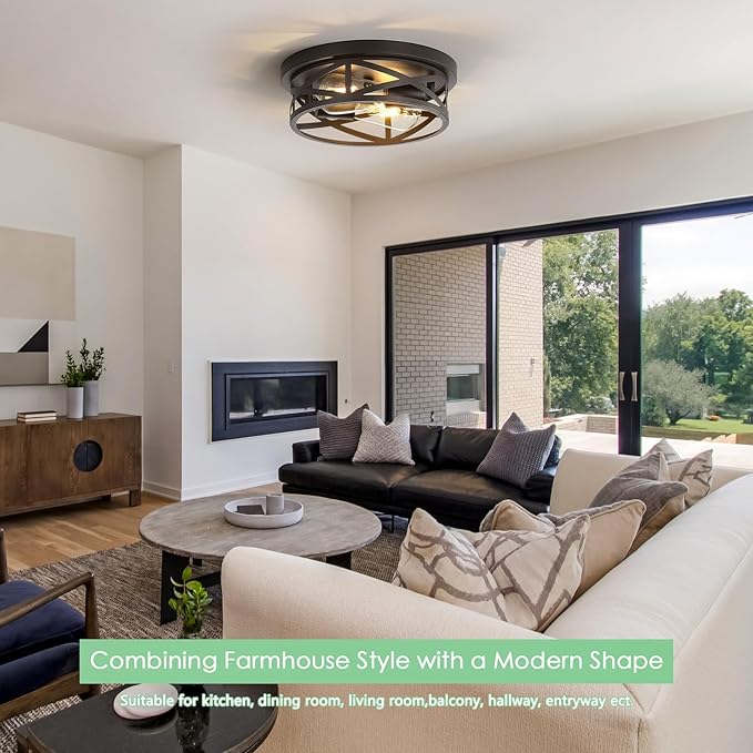 - Easy Installation-This modern farmhouse flush mount ceiling lamp comes with all hardware. Just take a few minutes you can finish the installation. Please contact us when you have any problems, we will make it right for you within 24 hours