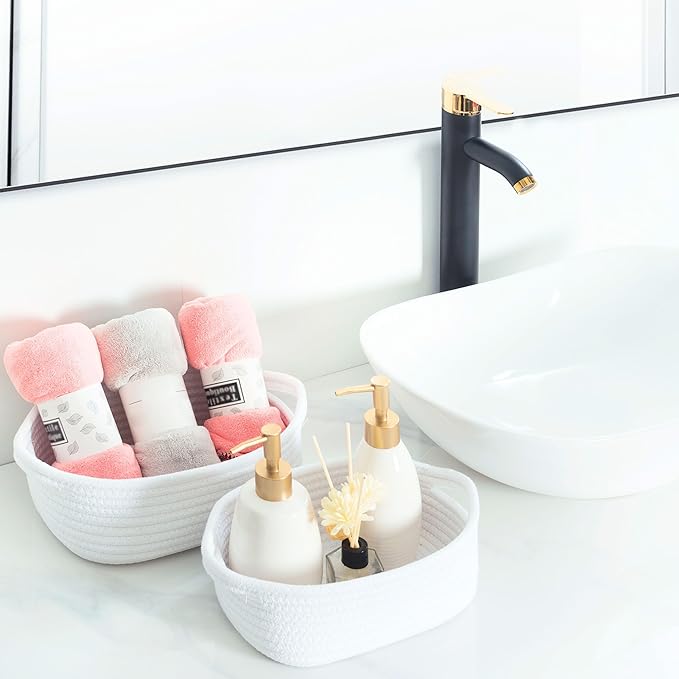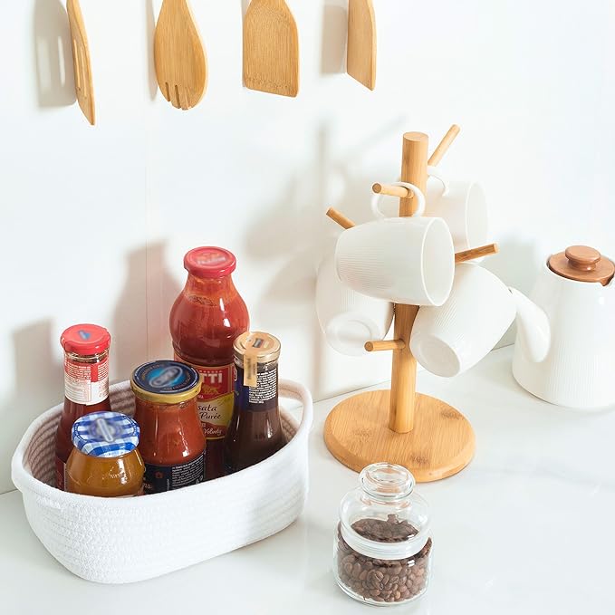 - Designed to Complement Any Décor - Enhance your table and countertop displays with our stylish and practical basket set. Not only will these baskets aid in organization, but their sleek and sophisticated design, coupled with a neutral color palette, effortlessly complements any decor style, be it boho, rustic, farmhouse, modern, or classic. Whether placed on a nightstand, bedside table, coffee table, pantry, walk-in closet, shelves, kitchen countertop, or bathroom vanity top, these baskets add character to your rooms while maintaining tidiness.