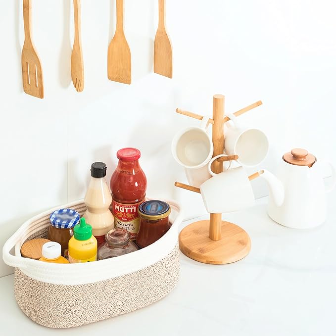 - Designed to Complement Any Décor - Enhance your table and countertop displays with our stylish and practical basket set. Not only will these baskets aid in organization, but their sleek and sophisticated design, coupled with a neutral color palette, effortlessly complements any decor style, be it boho, rustic, farmhouse, modern, or classic. Whether placed on a nightstand, bedside table, coffee table, pantry, walk-in closet, shelves, kitchen countertop, or bathroom vanity top, these baskets add character to your rooms while maintaining tidiness.