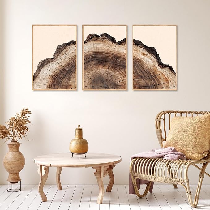 - 【Exquisite Quality Prints】Our tree ring wall art series celebrates long-lasting quality and exquisite craftsmanship. Made with superior materials and cutting-edge high-definition printing techniques, featuring inks that resist fading and canvases that repel water, every artwork is encased in a PS frame that mimics the texture of wood, augmenting its nostalgic appeal. Our commitment to flawless packaging ensures that your art arrives in impeccable condition, ready to grace your space.