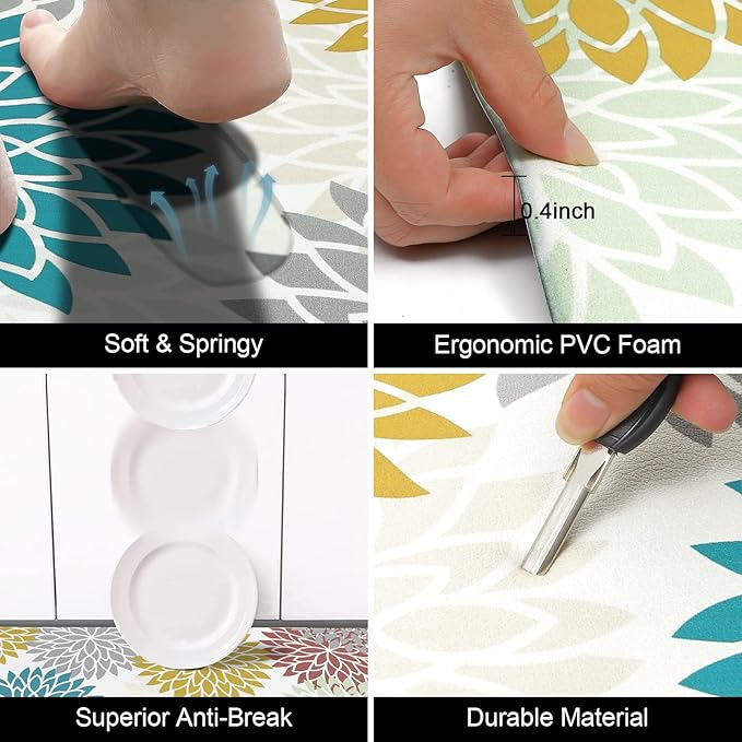 - Non-Slip & Safe for All Floors: Featuring a non-slip backing and beveled edges, these floral antifatigue kitchen rugs and mats stay firmly in place on wood, tile, marble, and more, preventing slips and trips. The beveled edges design ensure safety without curling,ensuring a safer kitchen environment