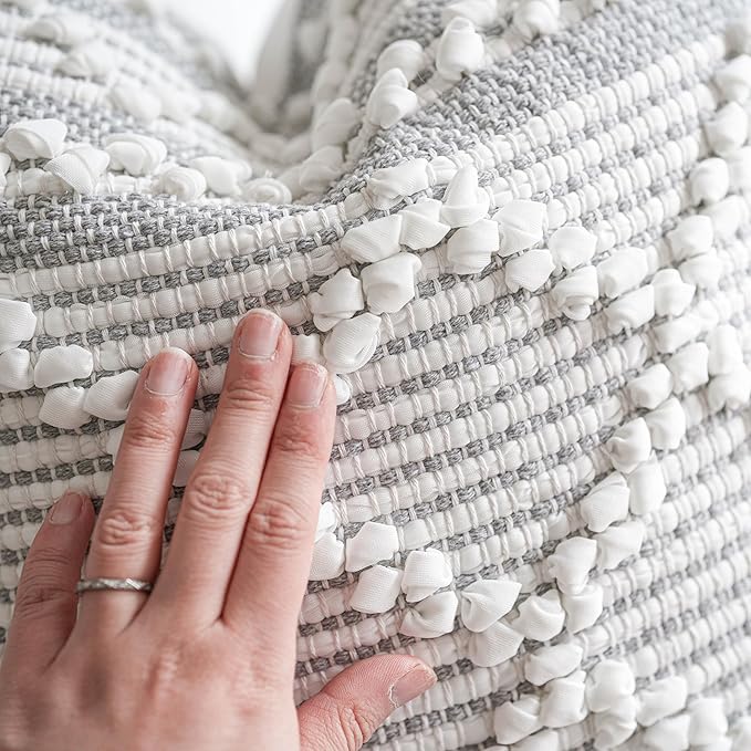 Gray White Decorative Throw Pillow Cover 20X20, Boho Accent Pillow for Couch, Square Modern Farmhouse Pillowcase for Living Room Couch Sofa Cushion Home Décor (Pack of 1)
