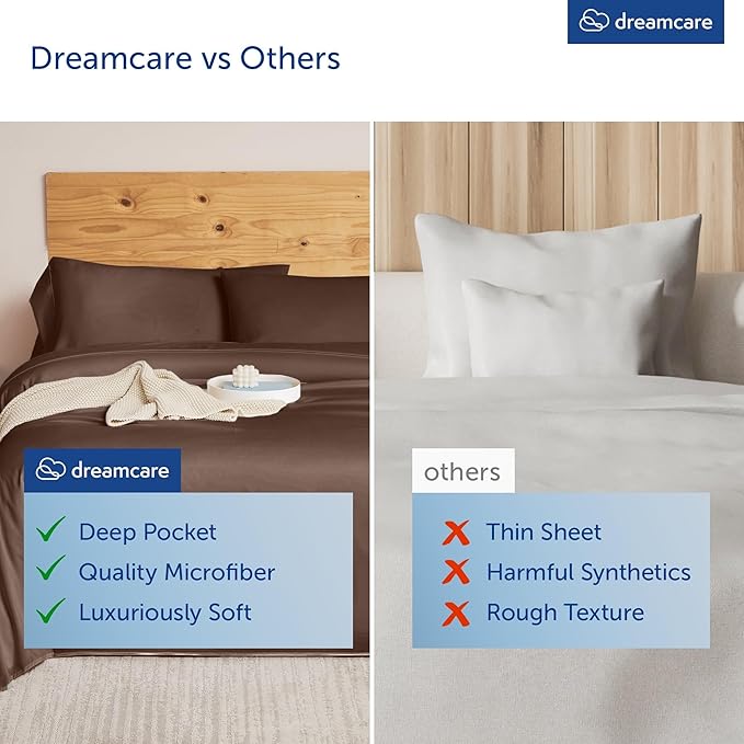 DREAMCARE Queen Sheet Set – 6 pcs Cooling Bed Sheets – up to 15” Deep Sheets Queen Size Bed Set – 2500 Supreme Collection –Extra Soft 100% Brushed Microfiber Hotel Luxury with Side Pocket –Mocha Brown
