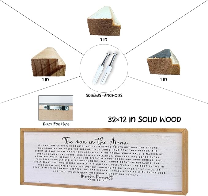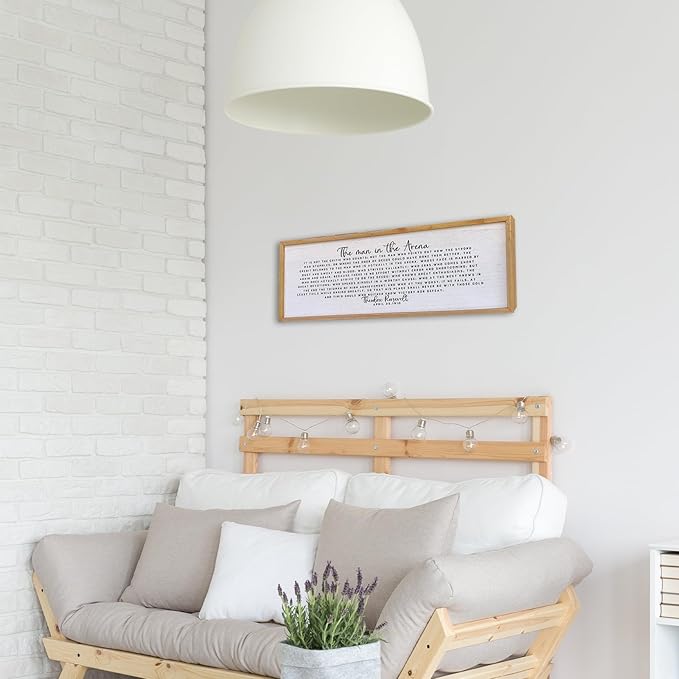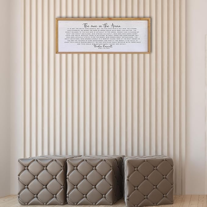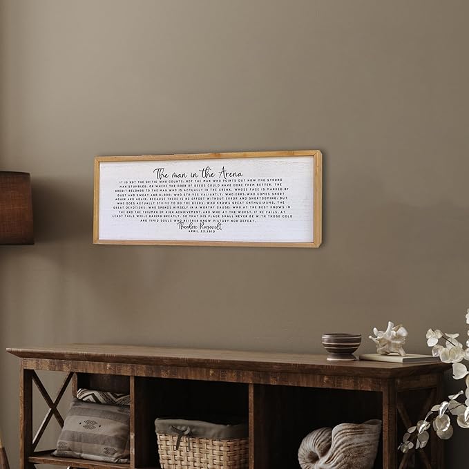 Surfapans The Man In The Arena Wall Decor 32"x12" Morden Office Motivational Wood Framed Sign For Men Large Farmhouse Living Room Inspirational Quotes Positive Speech Home Wall Decoration (Wood)