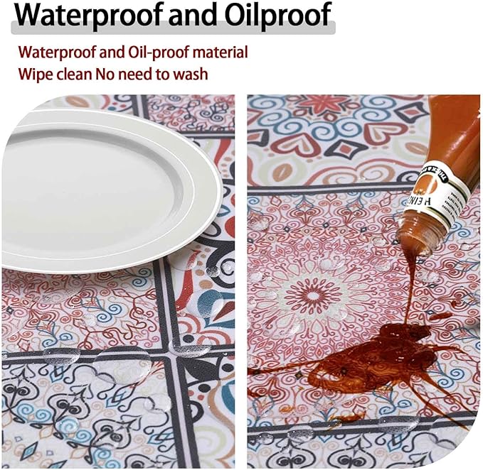- 【Waterproof, Oil-proof, and Scratch-resistant Design】This circle table cover can effectively protect your table from scratches. Made of waterproof and oil-proof material, it effectively prevents oil and water from leaking onto the table. Easy to clean. Note: The tablecloths cannot be machine washed or bleached!