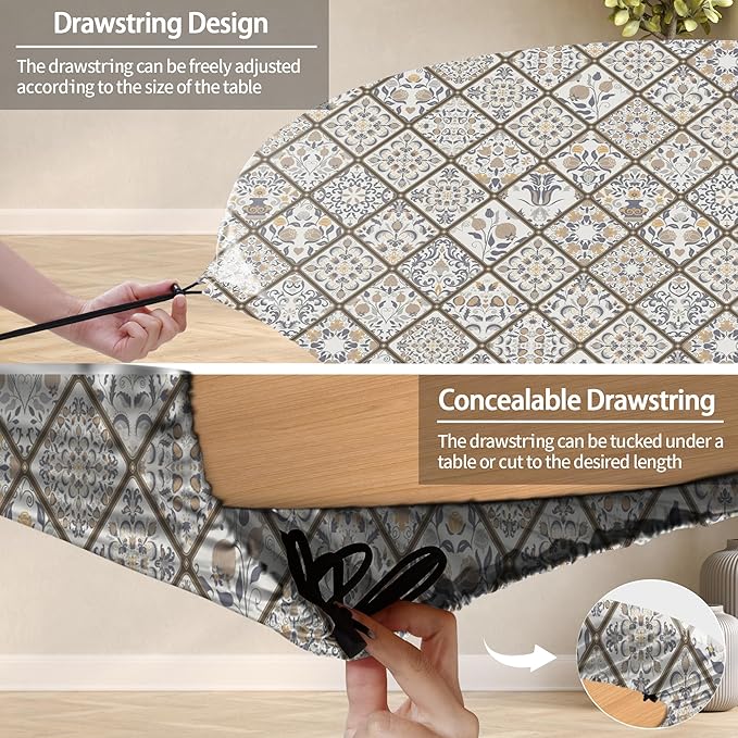 - 【Drawstring Design】Our tablecloth stands out from others with its unique feature. It adopts a drawstring design, allowing you to adjust the tightness of the straps according to the size of your table. With this feature, the tablecloth can snugly fit your round table, eliminating worries about shifting or being blown by the wind. Compared to traditional tablecloths, our round tablecloth is better suited to your table, providing you with an enhanced user experience.