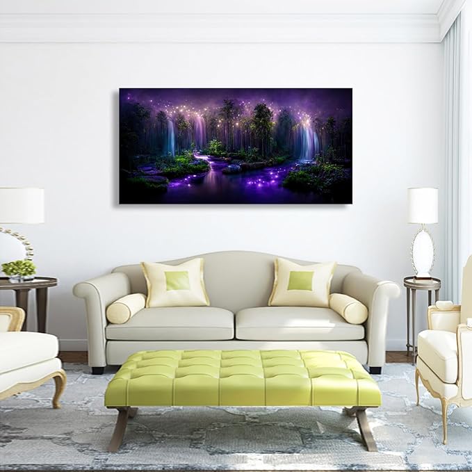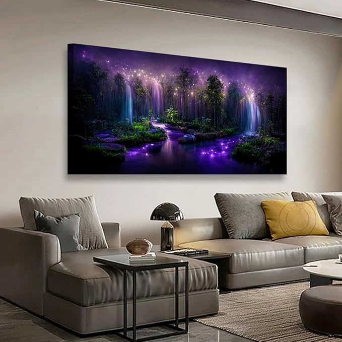 Purple Fantastic Wall Art Bedroom Wall Decor Living Room,Canvas Wall Art Office Farmhouse Paintings Artwork Modern Forest Starry Sky Lake Magical Wall Art Prints Pictures 20 * 40inch