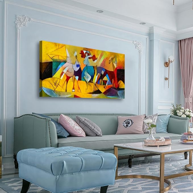 - 1.【The size of canvas wall art】Yellow wall art size:20 x 40inches x 1pcs(50 x 100cm x 1pcs),canvas art style:Golden pictures print on canvas wall paintings,the canvas wall art stretched has a black hook already mounted on the wooden bar and easy hanging.