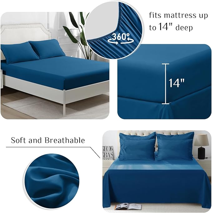 - Practical Design: Deep pocket elastic fitted sheet stays securely anchored on 10-14" mattresses, even with restless sleepers who toss and turn, while the envelope pillowcase keeps the pillow in place and make it easy to change