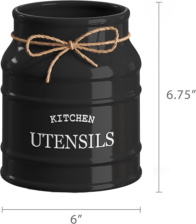 - Ceramic Utensil Holder - Decorate, organize, and beautifully display your cooking utensils in this farmhouse kitchen utensil holder. A decorative kitchen utensil holder for your countertop that will keep your kitchen neat and free of clutter.