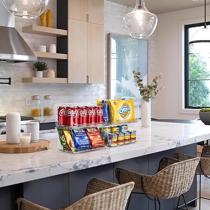 - Versatile Use: Great for storing fruits, veggies, packaged goods, yogurts, canned goods, drink boxes, baby food, condiments, cleaning supplies, bath products, makeup, and more. Versatile use as clear open front storage bins, stackable food storage bins, stackable kitchen storage, clear plastic bins for pantry, stackable cabinet storage bins, stackable bins for pantry, open bin storage basket, and stackable pantry bins
