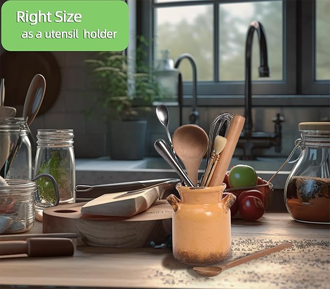- 【Distressed Finish】 The rustic vase is designed with retro and distressed surface. The shape of flower vase is round and lovely. Two handles on sides are easy to move and decorate whole ceramic vase, enhancing your interior style design and show your elegant artistic taste.