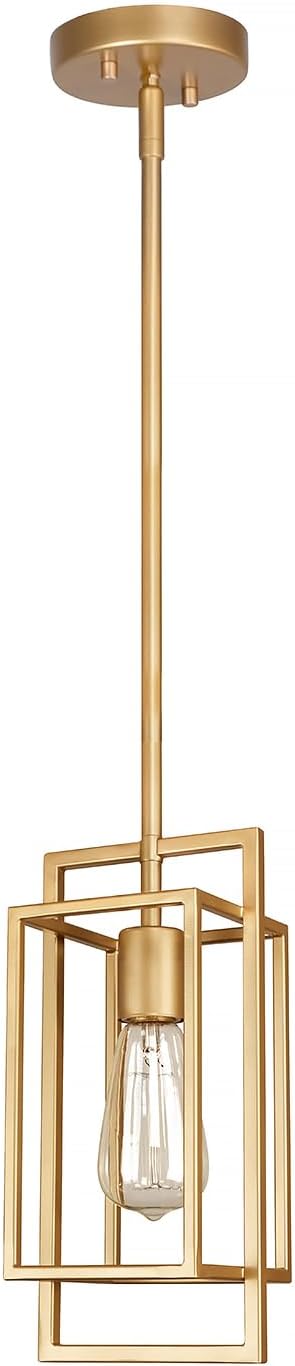 Muted Gold Pendant Lighting Fixture with Geometric Metal Cage, 1-Light Industrial Mini Lamp for Kitchen Island, Cafe Bar, Dining Room