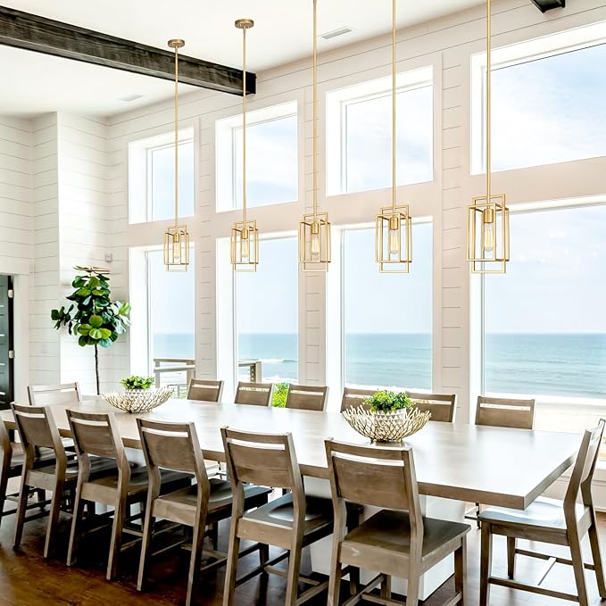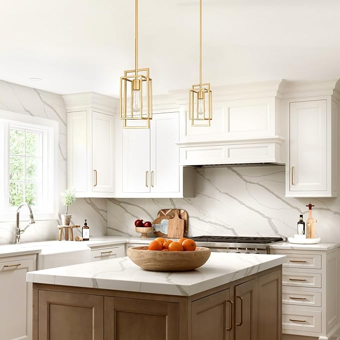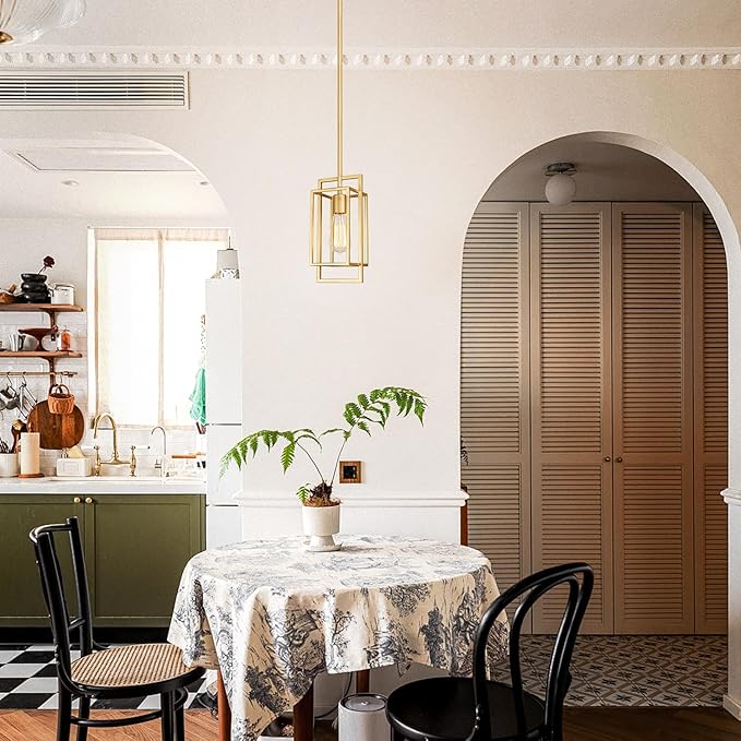 - Mini Antique Gold Pendant Light -- This small size hanging lamp with geometric metal cage features a vintage modern farmhouse style, simple shape and simple life