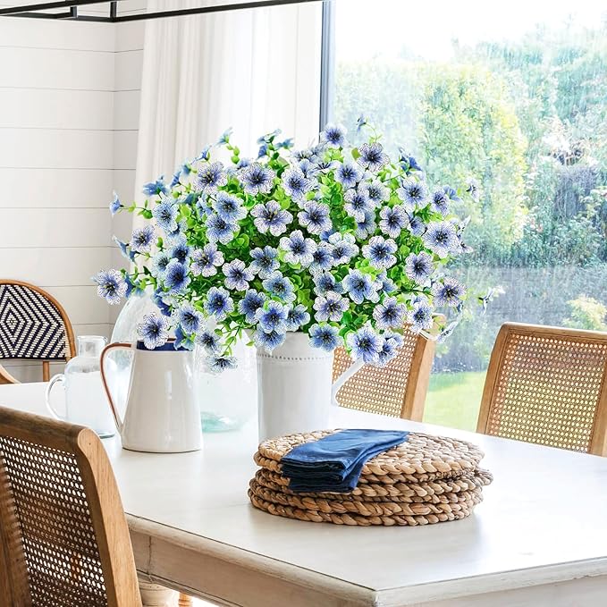 Agusbagli 10 Bundles Artificial Flowers Outdoor UV Resistant Fake Flowers No Fade Faux Plastic Greenery Shrub Plants for Wedding Home Garden Window Box Fireplace Thanksgiving Christmas Decor, Blue