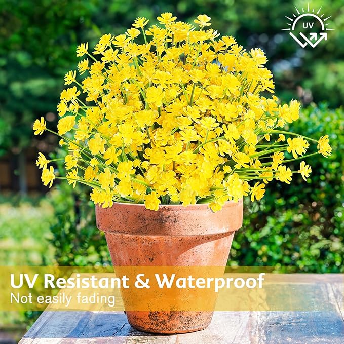 - Perfect for Outdoor/Indoor - Plastic flowers are ideal for outdoor porches,walkway,terraces windox box,front yard,pots,hanging planters,gardens,landscape,windowsills,allow you have beautiful color all year around.Also suit for birthdays,weddings,memorial place or grave,they can live anywhere and have withstood heavy rain storms and winds