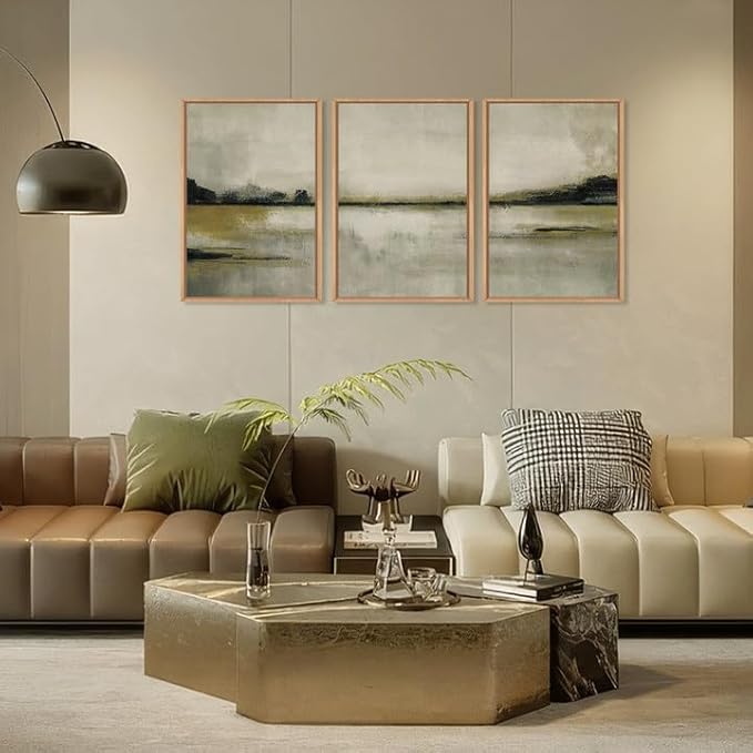 KAIRNE Large Neutral Abstrcat Landscape Wall Art Set, 3 piece Abstrcat Mountain Lake Wall Decor, Neutral Tan Scenery Wall Painting, Nature Landscape Art Print for Bedroom, Living Room, Office 16"x24"