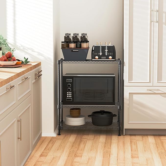 750 lbs 3 Tier Storage Rack Metal Wire Shelving Unit, Storage Standing Shelf Organizer for Laundry Bathroom Kitchen Pantry Closet Garage Basement Utility Room, Black 13.8" D x 29.5" W x 35.5" H