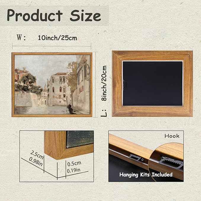 - 【Ready To Hang】Measuring 8x10Inch(20x25cm), this framed canvas art wall decor arrives ready to hang on the wall with hanging kits. (Before nailing the hook onto your wall, please refer to the installation instruction image provided. ) This vintage painting piece will bring a soothing effect to any room of your home with its calming colors. This antique country print is perfect for farmhouse style spaces, with a bold elegance that makes it an iconic centerpiece for you.