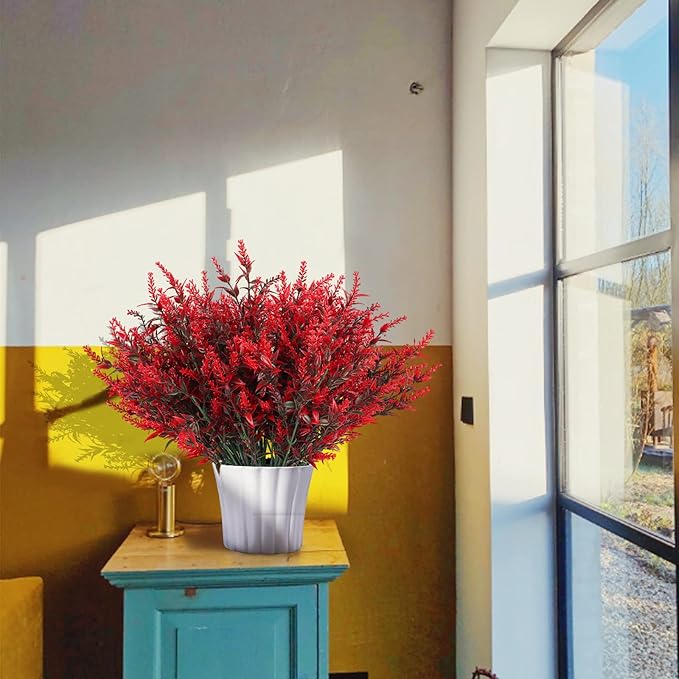 RECUTMS Spring Decoration, Artificial Greenery,36 Pcs Artificial Flowers Outdoors Fake Lavender Plants Indoor UV Resistant Plastic Faux Bouquets for Outdoor Home Garden Porch Decoration(Red)
