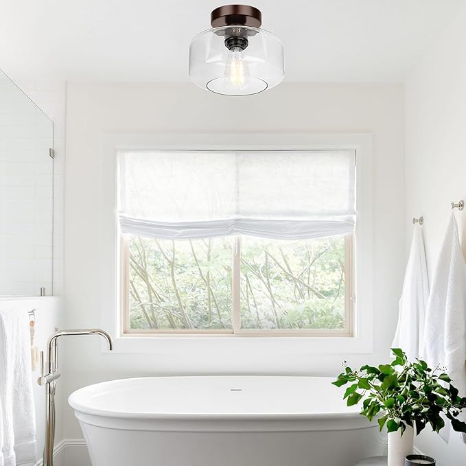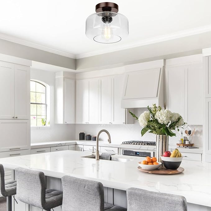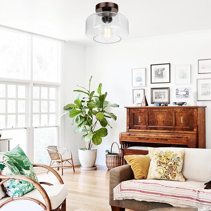 - Semi Flush mount Design& Classic Style--- This ceiling light is perfect for your Industrial /Modern look! A Brown base and impurity-free hand-blown clear glass with excellent light transmittance