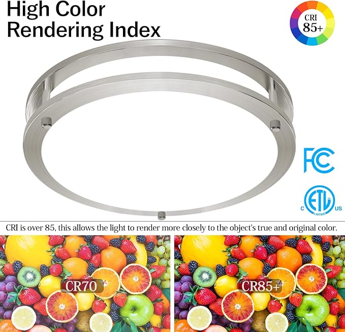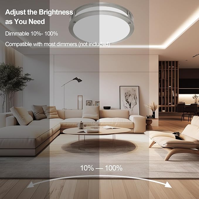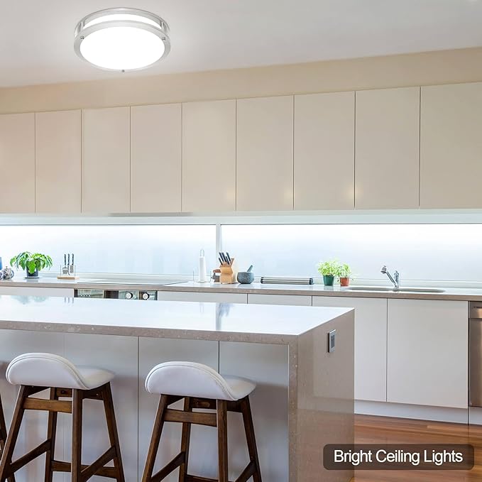 - 【Super Brightness & Energy Saving】The 16inch flush mount ceiling light built-in LED light sources, which has higher lumens and lower energy consumption, without ficker. It saves energy up to 85% more than bulbs, also saving your electric bills.