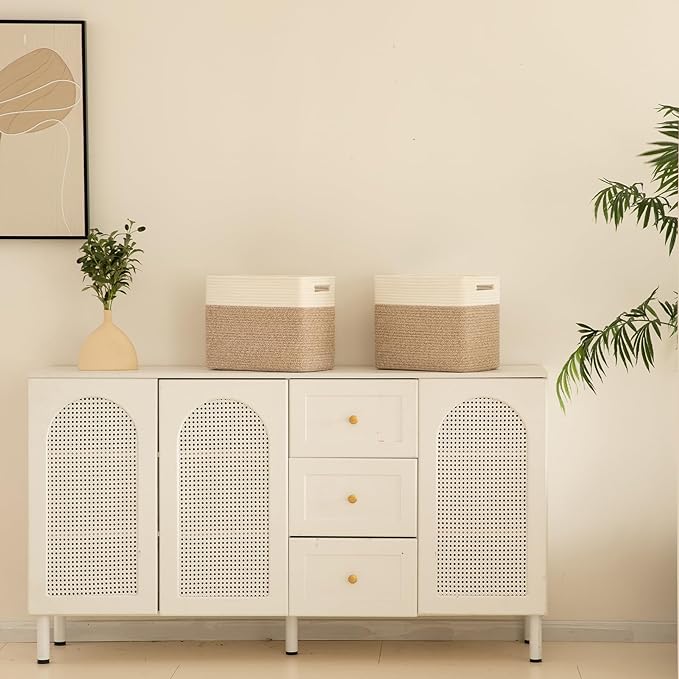 - Rectangle Woven Baskets for Organizing: We designed the toy basket to be square, stand more firmly, but also easier to regain shape. The neutral design and color can be adapted to most of the decoration, and the 2-piece set can also be used for classification and storage, which will be more convenient to find
