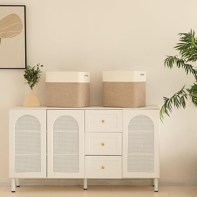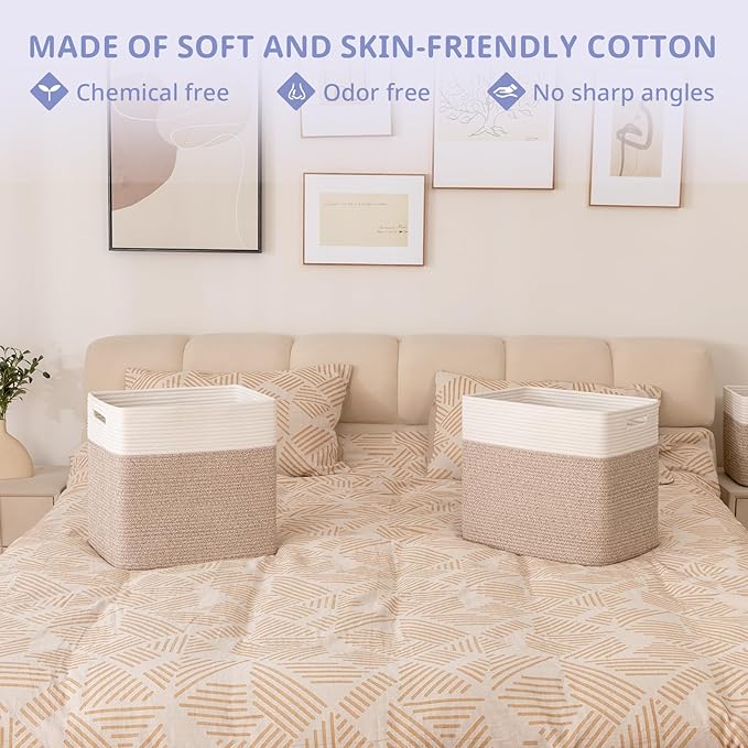 - 100% Cotton Rope Storage Baskets:OIAHOMY storage bins are made of high-quality natural cotton, chemical free and safe for kids and pets. It will not scratch your furniture and floor and more firm than plastic basket