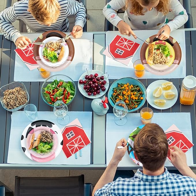 180Pcs Farm Animals Party Supplies Paper Plates and Napkins Serve 60 Disposable Tableware Set for Birthday Party Decorations Game Day Family School Holiday Sports Events
