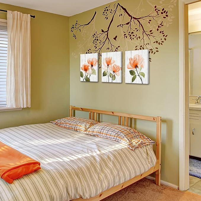 Saypeacher Orange Flower Wall Art Bathroom Pictures Orange Rose Wall Decor for Bedroom 12x16inchesx3pcs