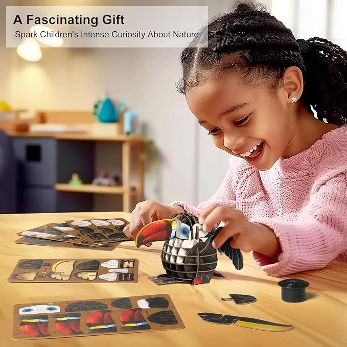 - 【Interesting 3D puzzle】This 3D toucan puzzle, featuring realistic sound effects, ignites children's curiosity about nature. Through the process of 3D assembly, it helps improve children's hand-eye coordination and attention. It is a brand-new educational toy for kids.