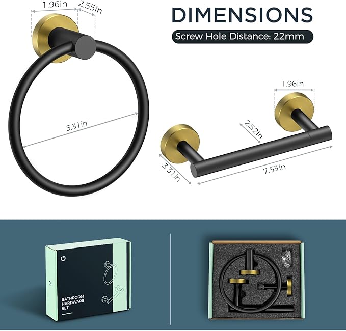 FORIOUS Toilet Paper Holder Wall Mount, SUS304 Stainless Steel Double Post Pivoting Tissue Roll Holder and Hand Towel Ring Set for Bathroom, RV, Bathroom Hardware Accessories Set, Black Gold