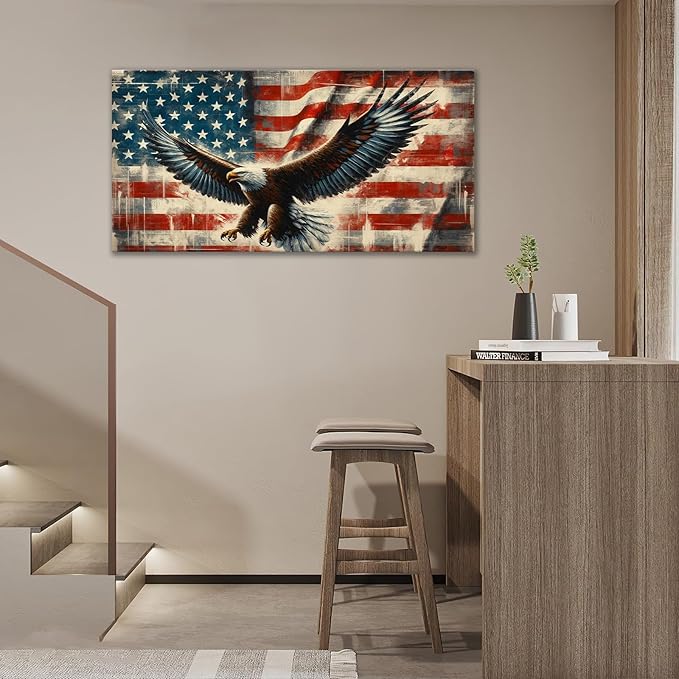 Large Bald Eagle Wall Art American Flag and Eagle Pictures Wall Decor Patriotic Motivational Bedroom Sign Canvas Painting Prints Modern Home Decoration Artworks Framed for Living Room Office 60"x30"